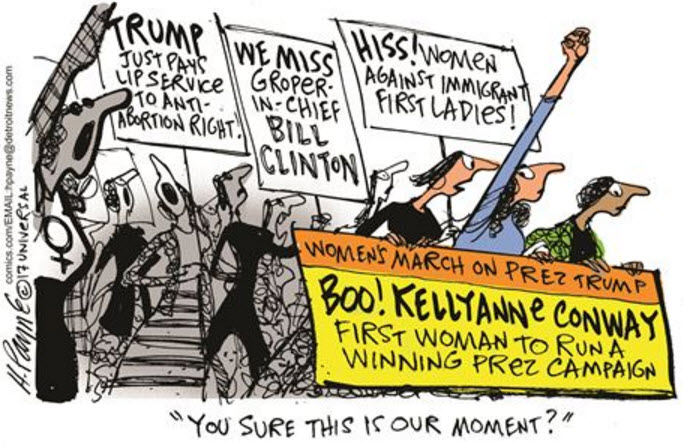 Do any of the women in the vulgarity-named “pussyhat march” realize they are, in effect, marching in support of the accused rapist and sexual predator known as Bill Clinton?