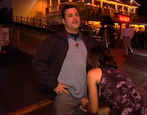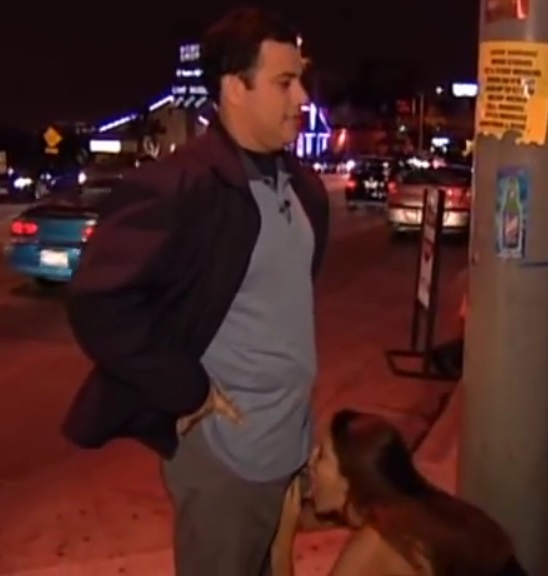 Here are some stills from the video, showing how Jimmy Kimmel convinces street women to feel his crotch and even engage in “oral activity” on his crotch, all on camera, in full public view: